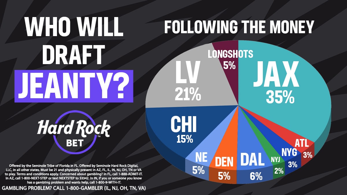 • 35% of the money bet on Jeanty’s future with Hard Rock Bet has been on the Jaguars.