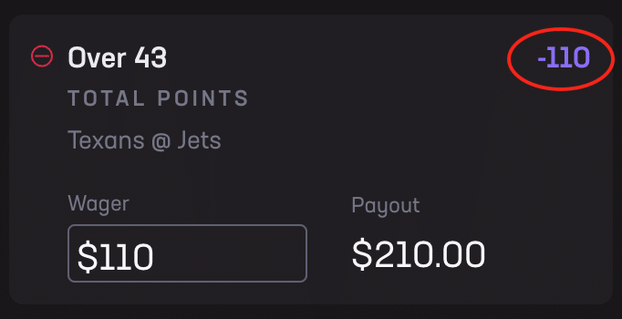 While the line for the actual over-under is one thing (ex. Over 43 points), it’s also important to pay attention to the actual pricing of the bet, which will dictate the potential payout.
